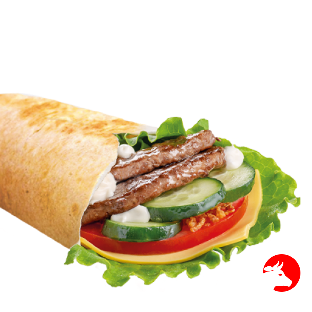Ролл с двумя сочными котлетами из говядины, ломтиком сыра чеддер, свежими помидорами, жаренным луком, салатом айсберг и огурцами. Все это в пшеничной тортилье, под соусом максибургер.