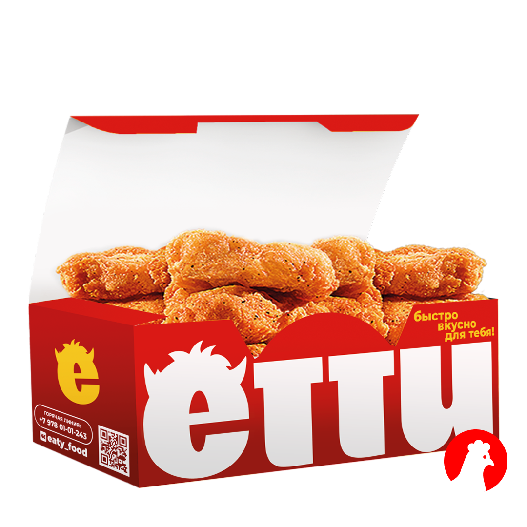 Наггетсы – это сочное 100% белое куриное мясо в хрустящей панировке со специями. Только натуральная курочка без искусственных красителей и ароматизаторов и без консервантов.
