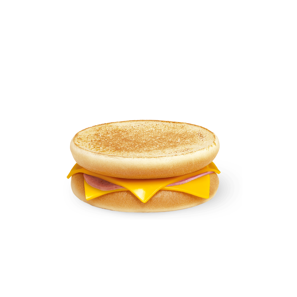 Карамелизованная булочка с ломтиком поджаренной ветчины и двумя ломтиками плавленного сыра чеддер